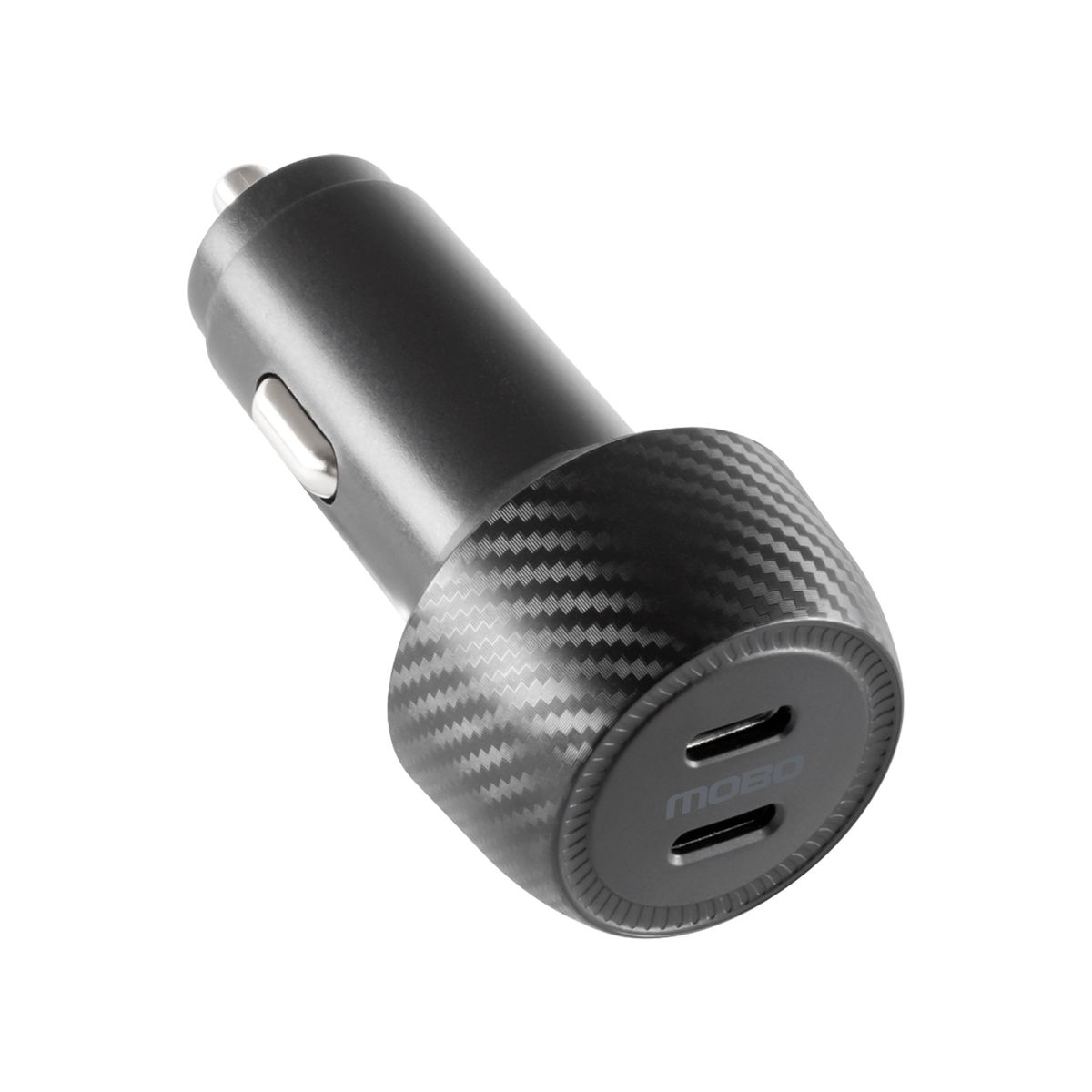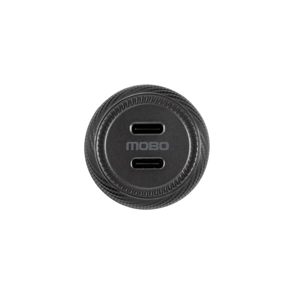 El cargador de auto Mobo Croq negro de 60W con doble puerto USB-C ofrece carga rápida y estable para smartphones, tablets y laptops mientras te desplazas.