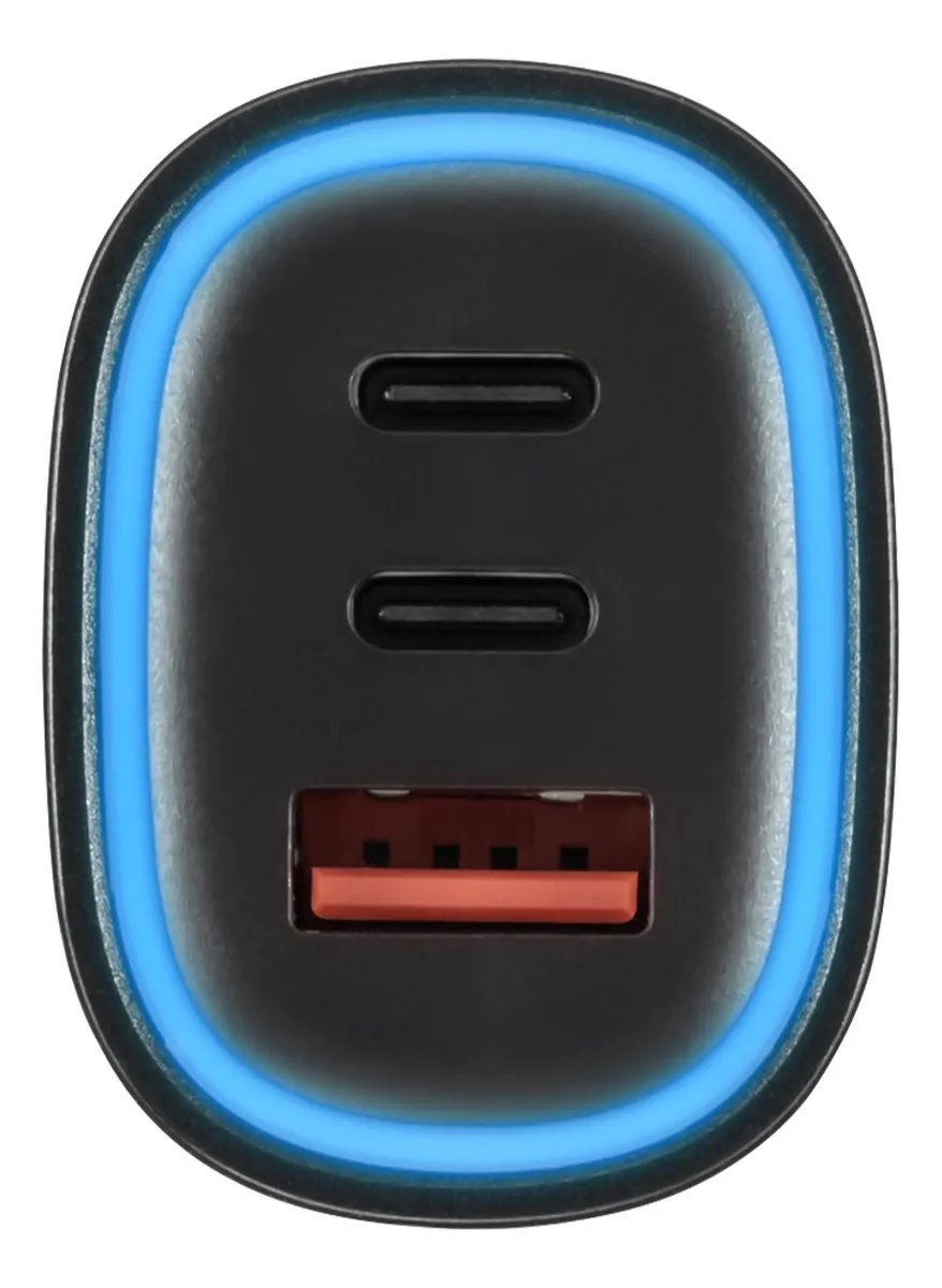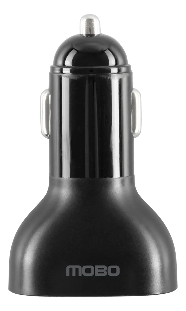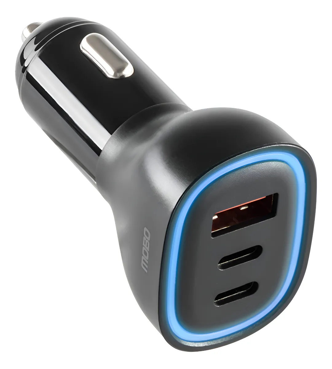 El cargador para auto Mobo Driv de 60W cuenta con tres puertos (1 USB-A y 2 USB-C) que brindan carga rápida para varios dispositivos simultáneamente durante tus trayectos.