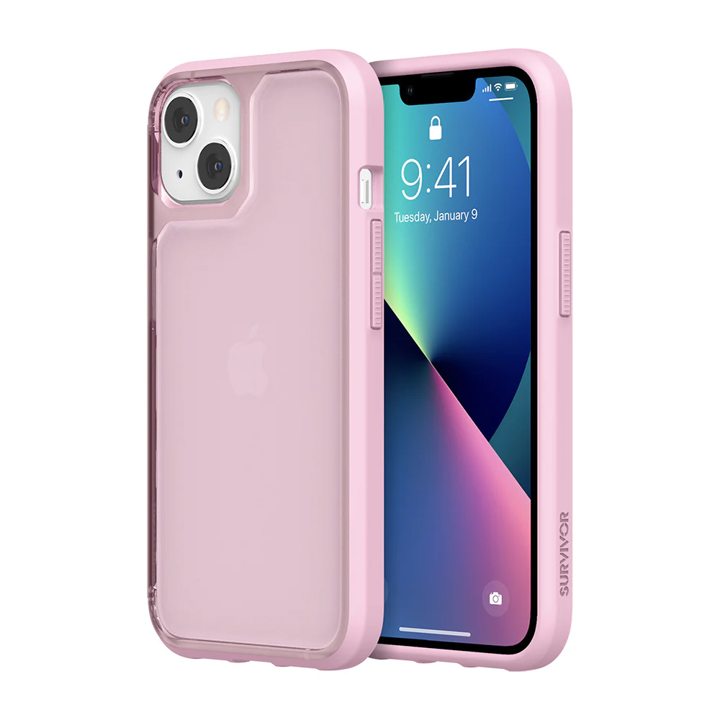 Protector Survivor Strong rosa para iPhone 13. Máxima resistencia y diseño elegante.